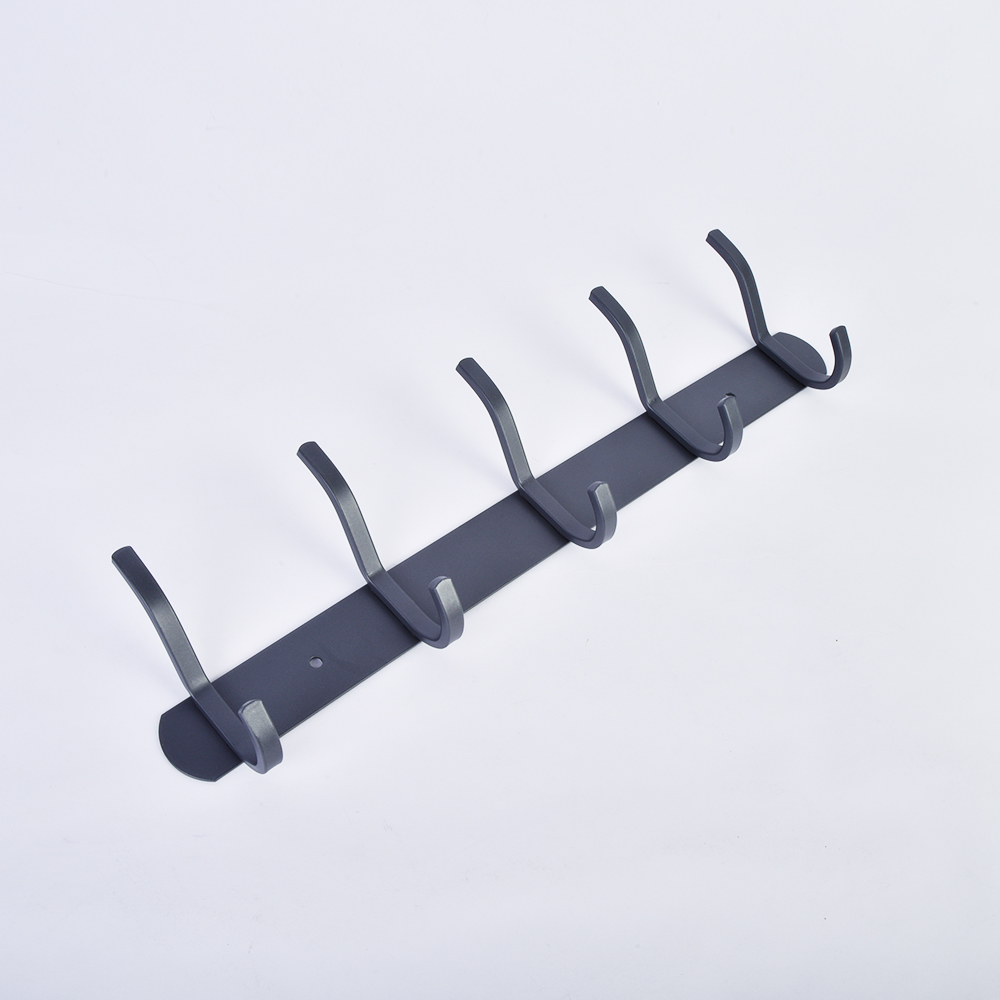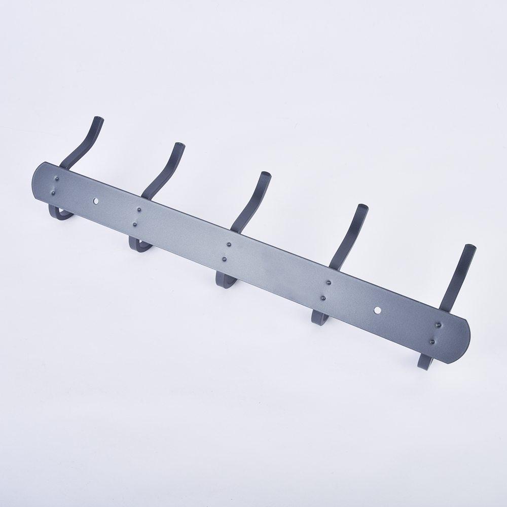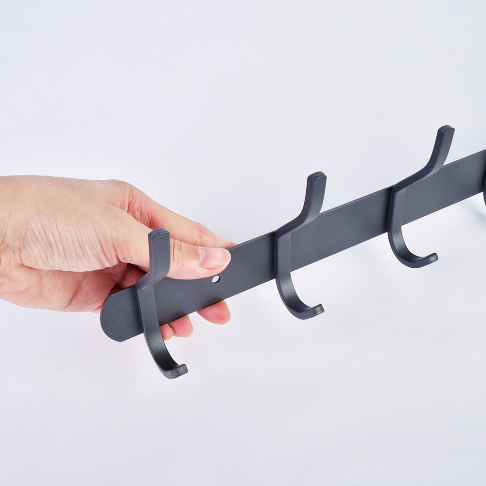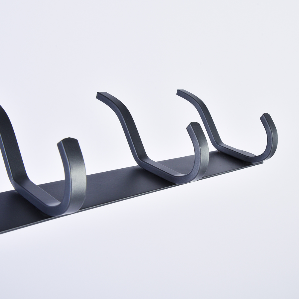 The rack comes with pre-drilled mounting holes for quick installation, and is available in multiple sizes (from 2 to 7 double hooks) to meet different storage needs.